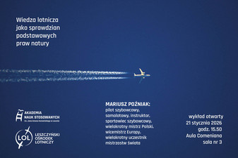 Wykład poprowadzi Pan Mariusz Poźniak - pilot szybowcowy, samolotowy, instruktor, sportowiec szybowcowy, wielokrotny Mistrz Polski, wicemistrz Europy, wielokrotny uczestnik mistrzostw świata.